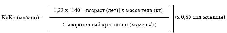 Таблица 1. Подбор дозы препарата с учетом функции почек