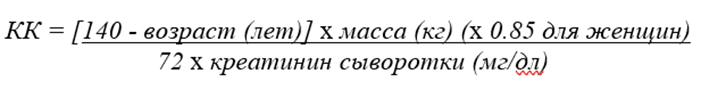 Интервалы дозирования должны быть индивидуализированы в зависимости от функции почек. Обратитесь к следующей таблице и скорректируйте дозу, как указано ниже. Чтобы использовать эту таблицу дозирования, требуется оценка клиренса креатинина пациента (КК) в мл/мин. КК (мл/мин) может быть оценен по креатинину сыворотки (мг/дл), определенной по следующей формуле:
