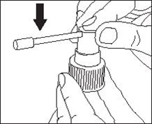 1. Прикрепите аппликатор к помповому устройству: крепко удерживайте помповое устройство, надавливая на верхнюю часть аппликатора. |