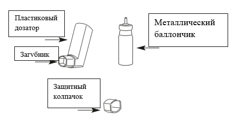 Герметичный аэрозольный баллон, содержащий однородную суспензию. При визуальном осмотре не должно быть каких-либо признаков физического повреждения или утечки