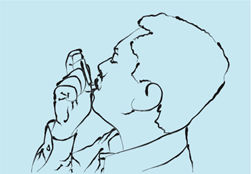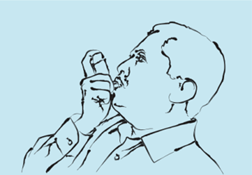 Слегка запрокинуть голову назад. Сделать медленно глубокий вдох через рот. Как только начали делать вдох, плотно нажать на верхнюю часть баллончика, чтобы выпустить лекарство и продолжать медленный и глубокий вдох.