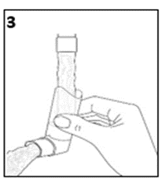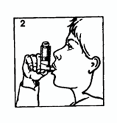 Во время ингаляции стрелка на баллоне должна всегда быть направлена строго вверх, а наконечник - вниз, независимо от положения, в котором проводят ингаляцию. Предпочтительно, препарат следует применять в положении сидя или стоя.