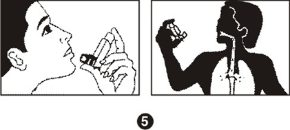 4. Извлеките ингалятор изо рта и задержите дыхание на 10 секунд или до тех пор, пока это удобно. Медленно выдохните (Рис. 5).