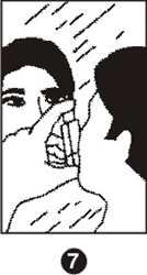 Потренируйтесь перед зеркалом в течение первых нескольких раз. Если вы видите "дымок", исходящий из верхней части ингалятора или из уголков рта, это означает отказ техники. Начните снова с шага 2. (Рис. 7)
