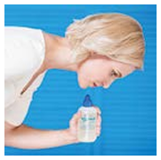 Плотно прижмите крышку устройства к промываемой ноздре. Глубоко вдохните, задержите дыхание, приоткройте рот на время проведения процедуры. Плавно, медленно, с минимальным давлением сжимайте емкость. При этом раствор равномерно заполняет промываемый носовой ход и вытекает наружу через другую ноздрю.