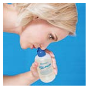 Для окончательного удаления из носовых ходов остатков раствора и слизи сожмите пустую емкость устройства, вдохните и задержите дыхание, закройте рот. Плотно приложите крышку устройства к правой ноздре, закрыв левую ноздрю пальцем свободной руки. Затем разожмите емкость, при этом емкость расправится. Также выполняется процедура удаления остатков раствора и слизи из левой ноздри. Голову можно поднять только после завершения процедуры.