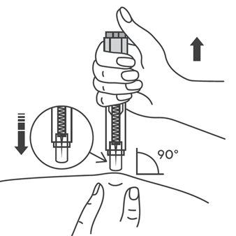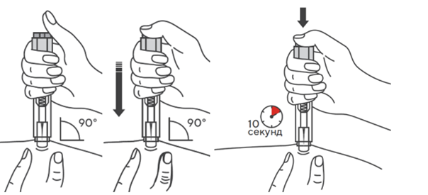 На данном этапе не следует снимать колпачок шприца/автоинжектора