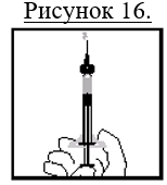 • Удерживая шприц вертикально, удалите все пузырьки воздуха, медленно нажимая на поршень, пока весь воздух не выйдет (см. рисунок 16).