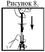 Добавление растворителя• Удерживая флакон в вертикальном положении на ровной поверхности, жмите на поршень очень медленно, пока весь растворитель не окажется во флаконе. Это поможет уменьшить образование пены (большого количества пузырьков) (см. рисунок 8).