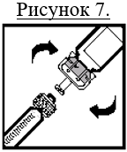 • Удерживая стеклянный цилиндр шприца (не белый ободок) в одной руке, а адаптер для флакона (не флакон) в другой, соедините шприц с адаптером флакона, помещая конец шприца в отверстие адаптера, и поверните по часовой стрелке, пока шприц полностью не закрепится в отверстии адаптера (см. рисунок 7).