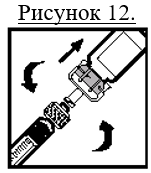 • Удерживая флакон вверх дном, отвинтите шприц от адаптера флакона, поворачивая его против часовой стрелки (см. рисунок 12).