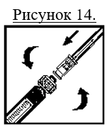 • Присоедините шприц к игле, поворачивая по часовой стрелке, пока он полностью не закрепится (см. рисунок 14).