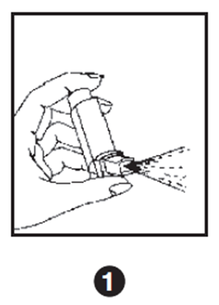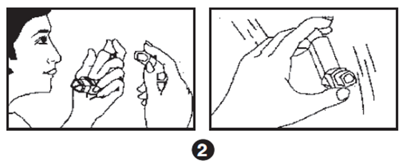 1. Перед первым применением или после длительного (неделя или более) перерыва в работе ингалятора снять колпачок мундштука путем легкого надавливания на бока колпачка, тщательно встряхнуть ингалятор и сделать одно распыление в воздух, чтобы убедиться в адекватной работе.