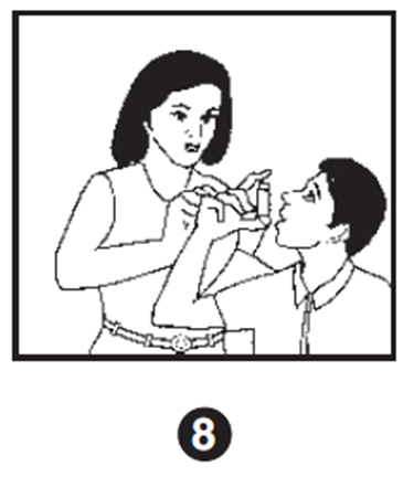 5. Извлечь ингалятор из ротовой полости и задержать дыхание на 10 секунд или настолько, насколько это комфортно. Медленно выдохнуть (см. рис. 5).