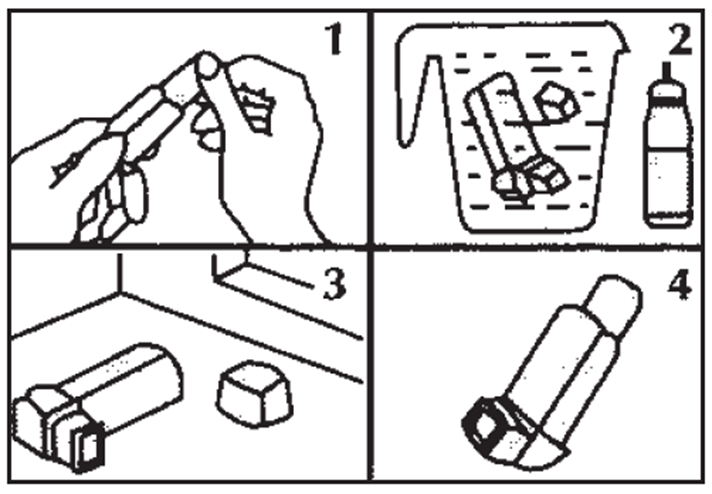 1. Извлеките металлический баллончик с препаратом из тела ингалятора. Снимите распыляющий наконечник.