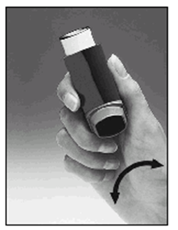 3. Тщательно встряхнуть ингалятор, чтобы содержимое ингалятора равномерно перемешалось.