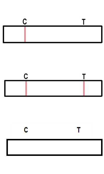 С (control) – зона контроля, T (test) – тестовая зона Отрицательный. Вы не беременны. Видна одна линия в зоне контроля. Если такая индикация проявилась в течении 10 минут, то тест выполнен правильно и Вы не беременны. Положительный. Вы беременны. В течении 5-10 минут видно 2 линии: контрольную и тестовую. Даже слабая тестовая линия свидетельствует о положительном результате. Вы беременны. Ошибочный. Тест выполнен не правильно. Если не видно ни контрольной, ни тестовой линии, то это означает, что тест выполнен не правильно. Причиной этого может быть несоблюдение инструкции: недостаточное количество мочи на тесте. |