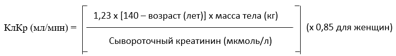 Прегабалин выводится из системного кровотока преимущественно почками в неизмененном виде. Поскольку клиренс прегабалина прямо пропорционален клиренсу креатинина, снижение дозы у пациентов с нарушением функции почек должно осуществляться в индивидуальном порядке по клиренсу креатинина (КлКр), как указано в таблице 1, и определяться по следующей формуле:
