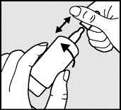 Поддерживайте руку, держащую флакон, другой рукой, как показано на рисунке.