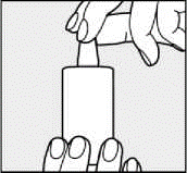 Удерживайте контейнер вверх дном, держа большим пальцем за выступ флакона и остальными пальцами - за дно контейнера.