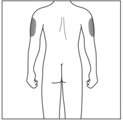 2b. Только для лиц, осуществляющих уход за пациентом, и медицинских работников: Если инъекцию проводит медицинский работник или лицо, осуществляющее уход за пациентом, инъекция может быть проведена в наружную поверхность плеча. |