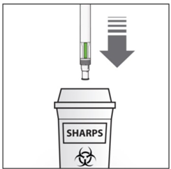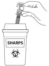 Поместите использованный предварительно заполненный шприц в контейнер для острых предметов (закрывающийся, устойчивый к проколам контейнер). В целях Вашей безопасности и здоровья других, иглы и использованные шприцы недопустимо использовать повторно.