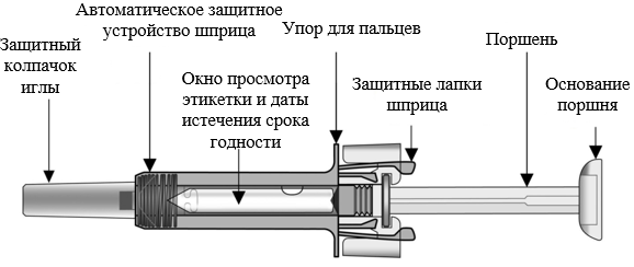 После того, как препарат был введен, автоматическое защитное устройство шприца активируется и скрывает иглу. Предварительно заполненный шприц с устройством для пассивной защиты иглы обеспечивает дополнительную защиту от случайных уколов иглой для медицинских работников, пациентов, которые самостоятельно вводят препарат по предписанию врача, а также ухаживающих за пациентом лиц.
