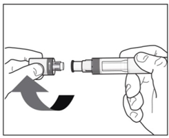 4. Снятие колпачка: Снимите колпачок с автоинжектора только когда будете готовы ввести препарат. Отверните колпачок в направлении, указанном стрелкой. После снятия выбросьте колпачок. Не пытайтесь повторно надеть колпачок. Используйте препарат в течение 5 минут после удаления колпачка. |