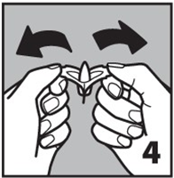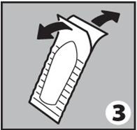 3. Чтобы раскрыть контурную ячейку, со стороны острого конца суппозитория, разъедините конец контурной ячейки и потяните в разные стороны, как показано на рисунке (3).
