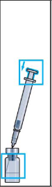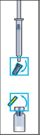 Снимите пластмассовую крышечку с флакона с порошком. Присоедините иглу для приготовления раствора к шприцу с растворителем и снимите защитный колпачок (Рис.1, 2).