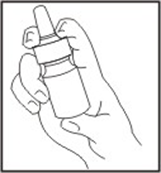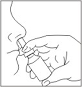 3. Осторожно высморкайтесь, чтобы очистить ноздри. Закройте одну ноздрю. Слегка наклоните голову вперед, держите флакон в вертикальном положении, осторожно вставьте назальный аппликатор в другую ноздрю (Рисунок 3). Не распыляйте непосредственно на носовую перегородку (стенку между двумя ноздрями)
