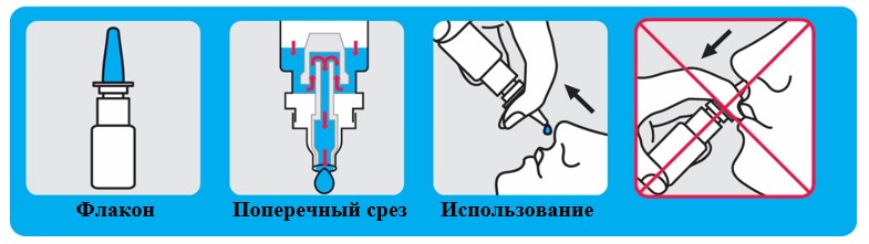 Схема использования капель назальных во флаконе, закупоренном капельницей: