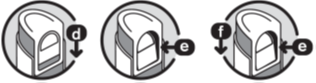 4. Нажмите на кнопку дозатора (е) и опустите дозатор вниз (f). Затем отпустите кнопку. Теперь спрей закрыт.