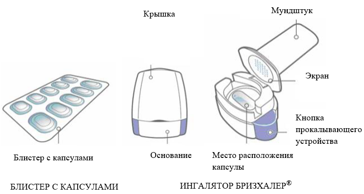 Для ингаляции капсул, находящихся в упаковке, используется только ингалятор Бризхалер®.