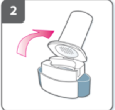 Откройте ингалятор: Возьмите ингалятор за основание и, отклонив мундштук в направлении стрелки, откройте ингалятор. |
