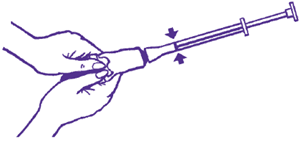 3. Сжимать тюбик, чтобы заполнить аппликатор кремом до красной кольцевой метки (поршень остановится на уровне кольцевой метки).