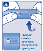 • Перед первой инъекцией с помощью каждой новой шприц-ручки проверьте поступление препарата. Если шприц-ручка уже находится в использовании, то перейдите к операции 3 «Установка дозы».