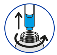 прочно вставьте шприц в горлышко флакона