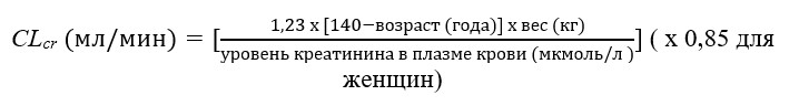 Прегабалин выводится из системного кровотока в неизмененном виде, преимущественно почками. Поскольку клиренс прегабалина прямо пропорционален клиренсу креатинина, уменьшение дозы у пациентов с нарушением функции почек необходимо проводить индивидуально, согласно показателю клиренса креатинина (CLcr), как указано в таблице 1. Клиренс креатинина определяют по формуле: