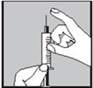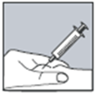 6. Выбросьте иглу, которую Вы использовали, для набора раствора и замените ее тонкой иглой для подкожного введения. Положите заполненный шприц на чистую поверхность. Не нажимайте на поршень.