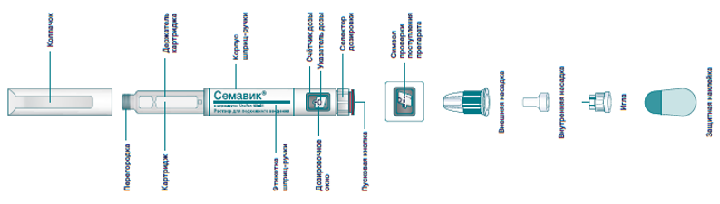 Внимательно прочитайте этикетку на шприц-ручке и убедитесь в том, что Вы используете именно тот лекарственный препарат, который Вам назначил врач, в нужной Вам дозировке, а также проверьте срок годности препарата. Затем посмотрите на представленные ниже иллюстрации, чтобы ознакомиться с характеристиками и составными частями шприц-ручки.