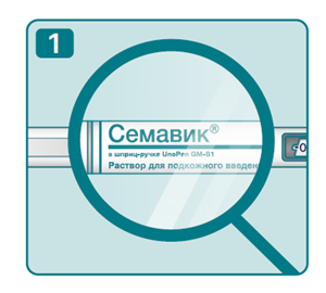 | 1. Проверьте название на этикетке шприц-ручки. Необходимо убедиться, что в ручке содержится препарат Семавик 0,25 мг/доза, 0,5 мг/доза, 1 мг/доза. Это особенно важно, если Вы применяете более одного инъекционного препарата. |