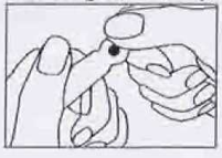 После этого отломить верхнюю часть ампулы путем нажатия в месте нанесения цветной точки.