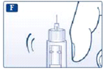 Держите шприц-ручку иглой вверх. Несколько раз осторожно постучите по картриджу пальцем. Это необходимо для того, чтобы пузырьки воздуха переместились в верхнюю часть картриджа.