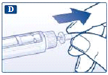 Когда игла находится в колпачке, осторожно подтолкните наружный колпачок иглы вперёд, чтобы игла полностью вошла в него. Затем отсоедините иглу. Выбросьте иглу, соблюдая меры предосторожности, и закройте шприц-ручку колпачком.